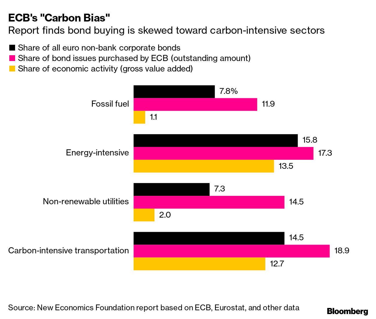 环保活动人士和经济学家声称,欧洲央行有一种方法可以在其刺激计划中考虑气候风险,而无需官员们经常说需要耗费大量时间的准备工作。在一份新报告中,来自新经济基金会、绿色和三所英国大学的研究人员认为,该机构应该放弃其市场中立的原则,因为投资者过于慷慨地定价了污染公司发行的债务,而借款成本又得到了欧洲央行的支持。