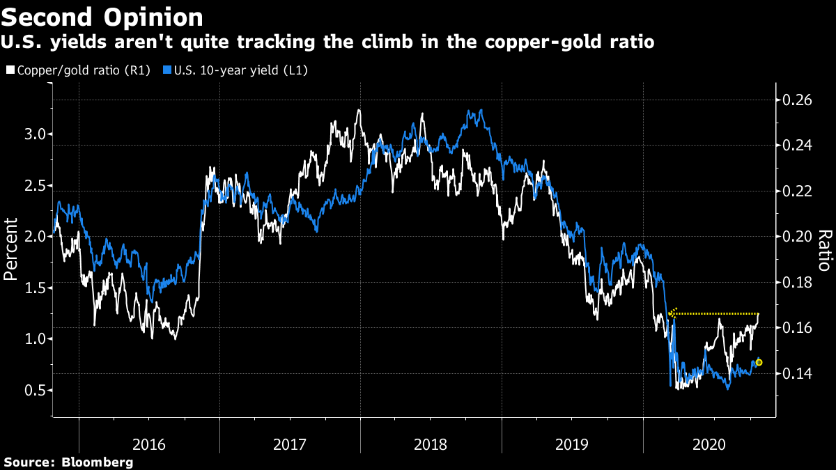 观察铜金比率——这是一个很好的衡量全球经济情绪的指标,紧密跟踪美国10年期收益率——表明它们应该更高。它们没有更高的部分原因很可能是铜价上涨主要受供应驱动,智利的罢工增加了人们对扩大中断的担忧。当然,背景中潜在的是美联储可能实施的收益率曲线控制,如果最新的冠状病毒感染激增开始对经济复苏产生影响,这将更加引起关注。国债收益率可能会进一步上升——预计1%水平将在即将到来的市场评论中占据重要位置。但真正的问题可能是在美联储出手并将其击回原位之前,它们会上涨到多高。