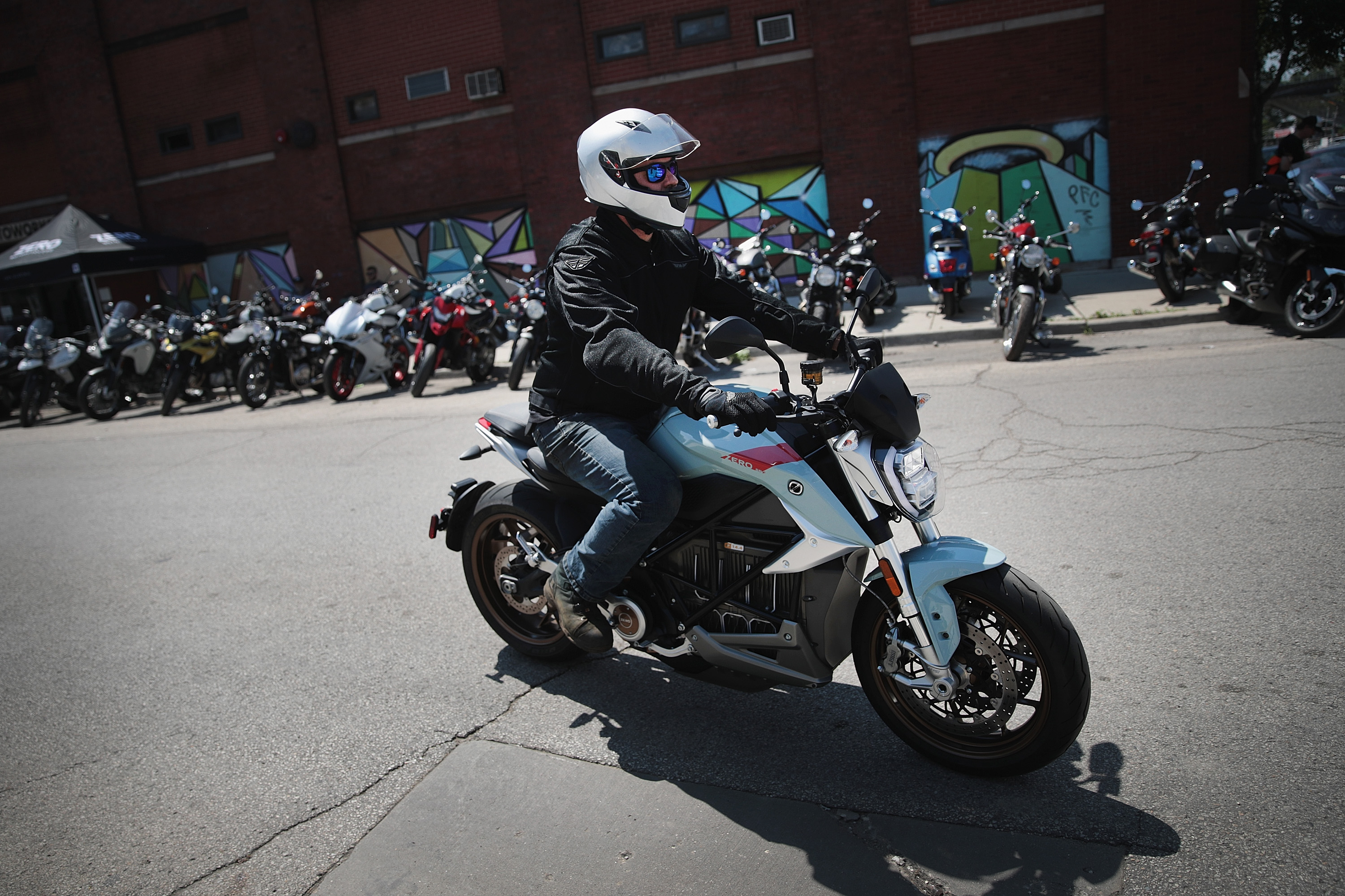 芝加哥的一名Zero电动摩托车骑手。摄影师:Scott Olson/Getty Images 北美电动汽车(EVs)并非是解决气候问题的灵丹妙药,但Brown指出,除了没有尾气排放外,电动摩托车从轮胎磨损中喷出的PM25要比电池动力汽车或SUV少。“这些汽车对缓解我们拥挤街道上的交通拥堵毫无作用,”Brown说。“我们还必须记住,摩托车制造的碳足迹仅为汽车的一小部分。”
