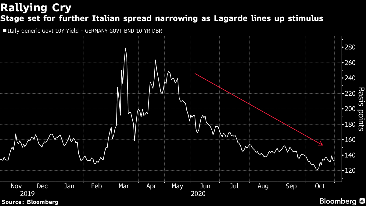 欧洲央行的行动对于市场来说来得正是时候,市场因新冠病例再次激增和新的封锁而动荡不安。但令人不安的是,尽管已经实施了负利率、大规模资产购买计划和几轮廉价贷款,但央行仍需重新装填其大炮以支撑经济。