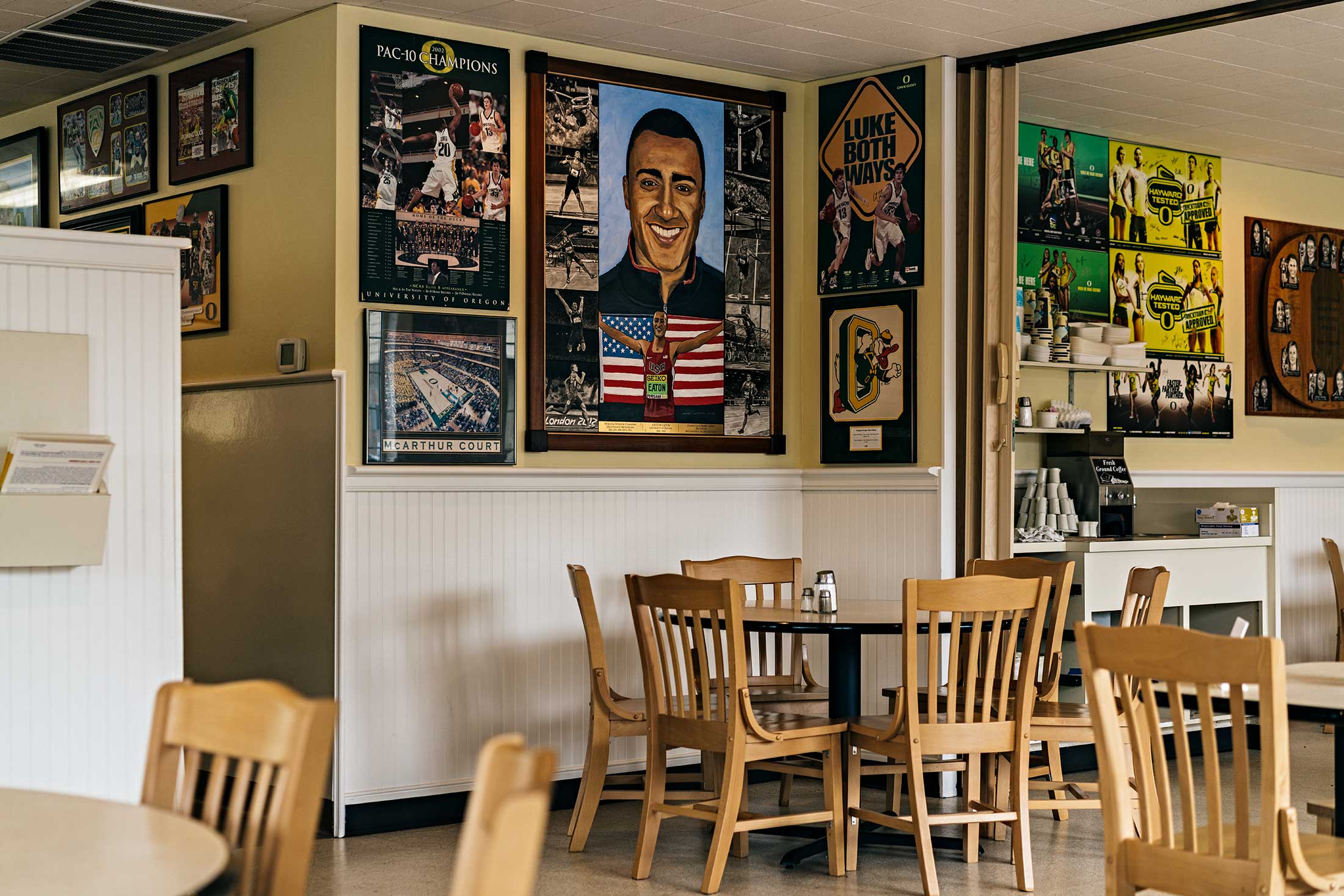 当达里尔·泰勒1969年开始在原始煎饼屋做洗碗工时,尤金还是一个宁静的木材小镇。这家餐厅位于校园北部,供应伐木工人、附近威廉斯面包店的工人以及少数学生和教师。即使在20世纪90年代,当冰毒实验室开始爆炸,街道有时因政治抗议而燃烧时,这种情况仍在继续。托尼娅·哈丁是该州最著名的运动员。泰勒说他的大多数兄弟都在工厂工作;他留在煎饼屋,最终成为了业主。“至少在这里,我能吃饱,”他说。