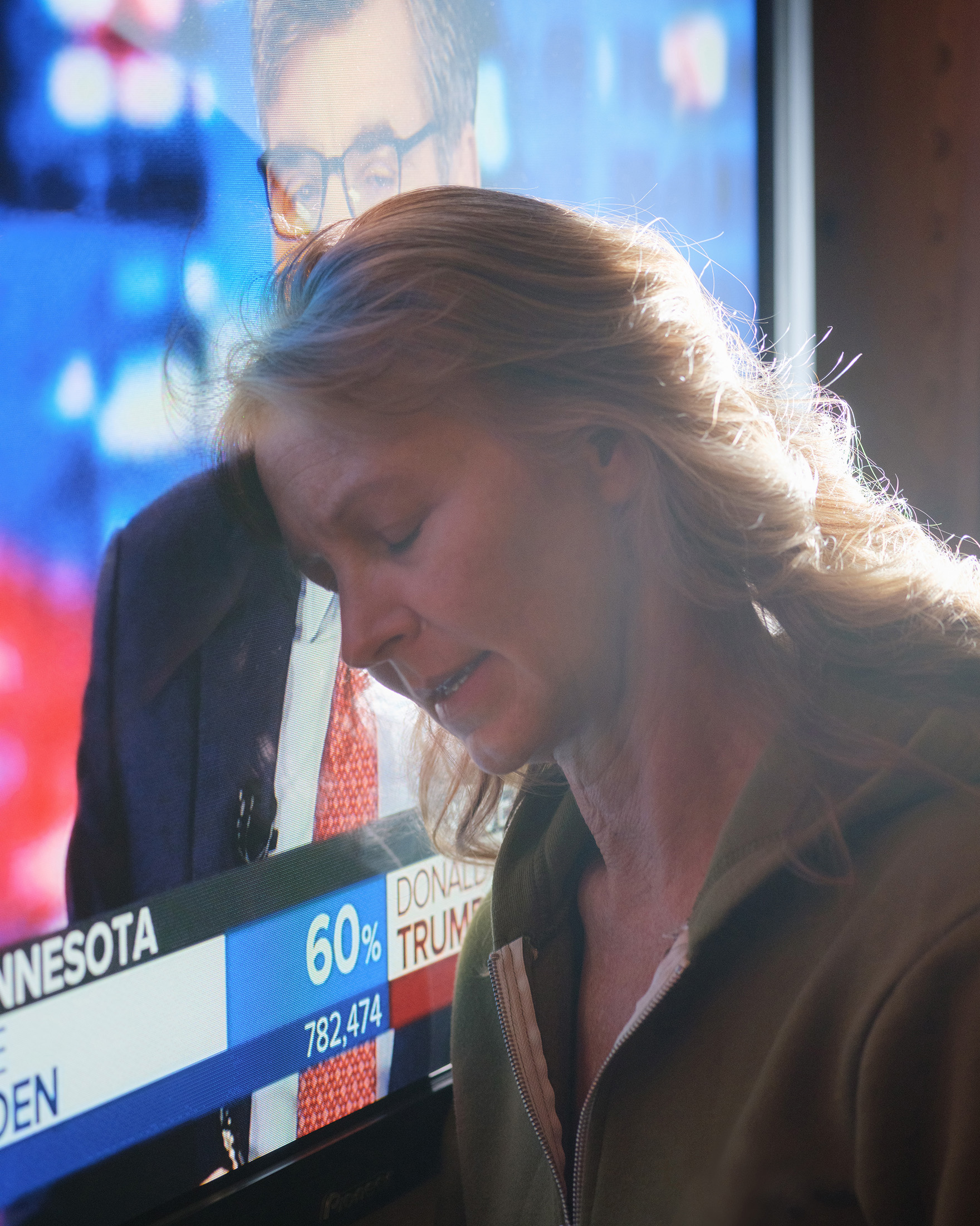 Robin Molnar在加利福尼亚州圣路易斯奥比斯波观看选举结果摄影师:Ryan Molnar