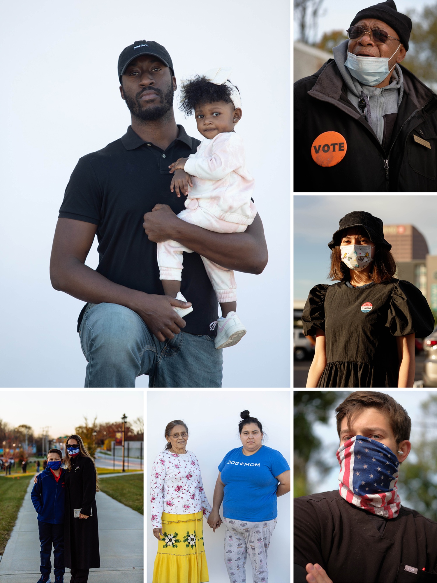 从左上角开始顺时针方向:Bill Christianson在密尔沃基;Mark Goggans在佛罗里达州Nokomis;Donna,北卡罗来纳州恩卡的投票问候者;Ja Koenklang在新罕布什尔州达勒姆;宾夕法尼亚州米德尔敦镇的Blevin家庭;费城的Ricky Hainey和Ka’nyla Hainey;休斯顿的Paige Anding和她的儿子Isaiah Martinez;亚利桑那州苏瑞普莱斯的David Nash摄影师:AZ:CASSIDY ARAIZA为BLOOMBERG BUSINESSWEEK拍摄;FL:MICHAEL ADNO;NC:CLARK HODGIN;NH:KATE WARREN;PA:CHRISTOPHER LEMAN为BLOOMBERG BUSINESSWEEK拍摄;TX:ERIN TRIEB为BLOOMBERG BUSINESSWEEK拍摄