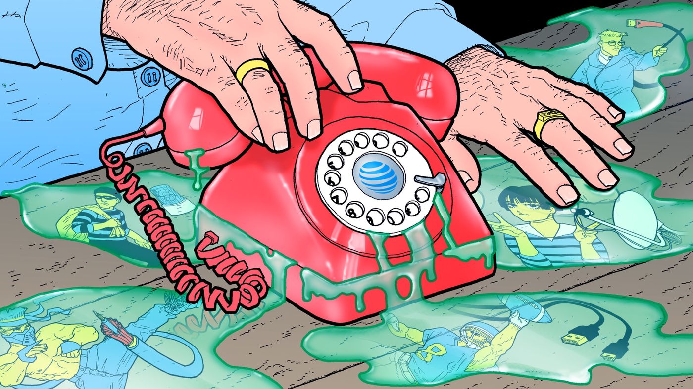 插图:Joseph P. Kelly。AT&T在20世纪大部分时间是主导电话公司,但它变得如此庞大,以至于政府被迫将其拆分。这些业务随后重新合并 - 再次以AT&T的名义 - 然后开始大肆收购,购买了DirecTV、时代华纳和一系列较小的交易。