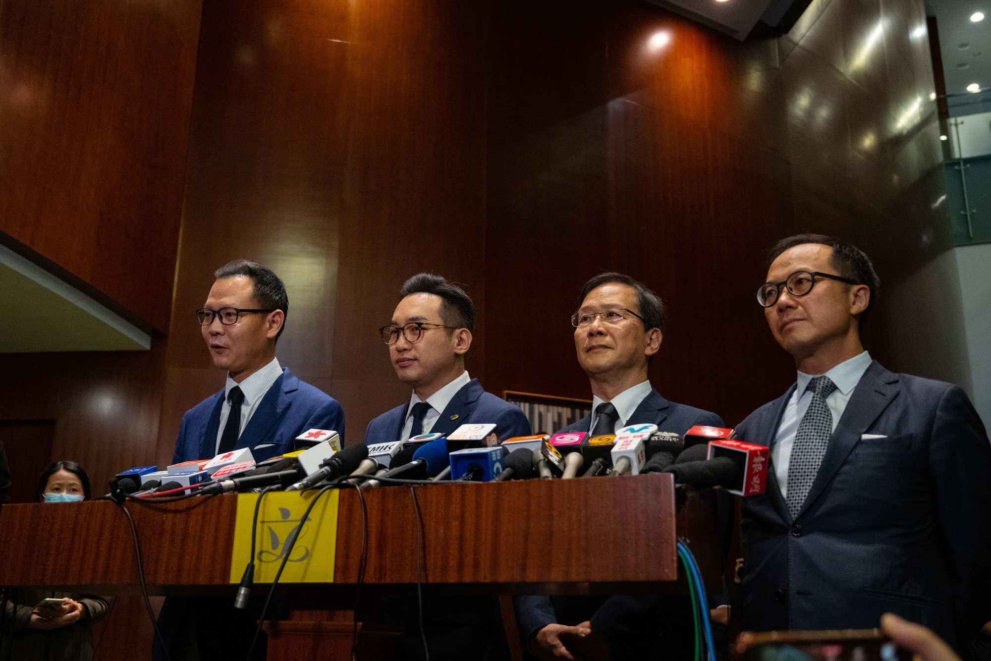 被取消资格的反对派议员在周三在香港立法会举行新闻发布会。