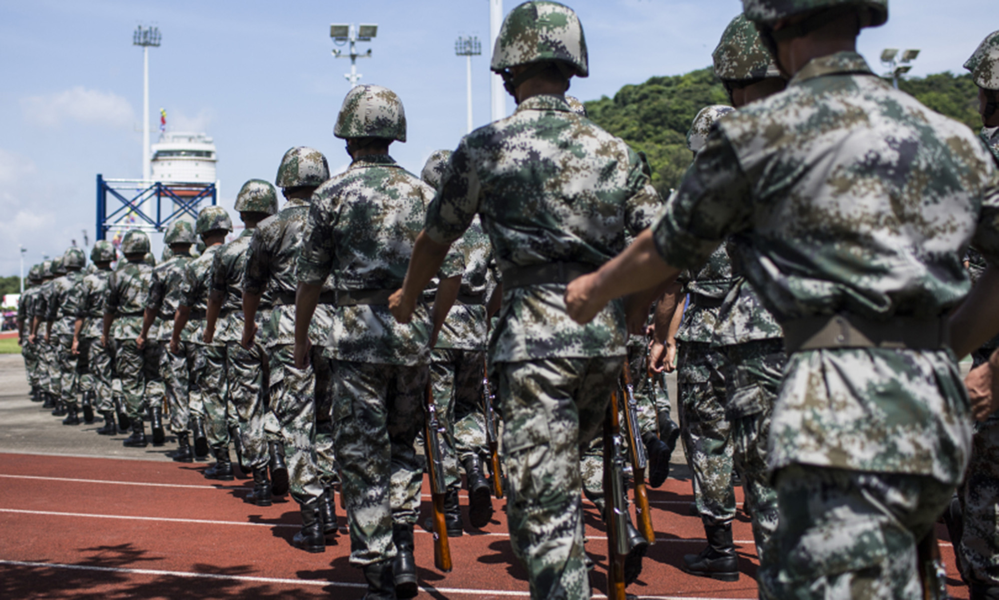 人民解放军成员在2015年香港的昂船洲兵营行进。