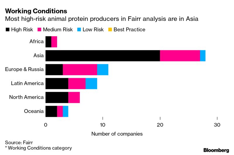 一些顶级肉类供应商没有做足够的工作来预防传染病爆发,强调了需要改进从生物安全到动物福利的措施,一家25万亿美元的投资者联盟表示。Fairr的分析显示,在60家最大的上市肉类、奶制品、鱼类和禽蛋供应商中,约四分之三被认为在遏制潜在未来的人畜共患病方面存在高风险。超过一半的公司在抗生素使用、工作条件和动物福利等标准上被评定为高风险。
