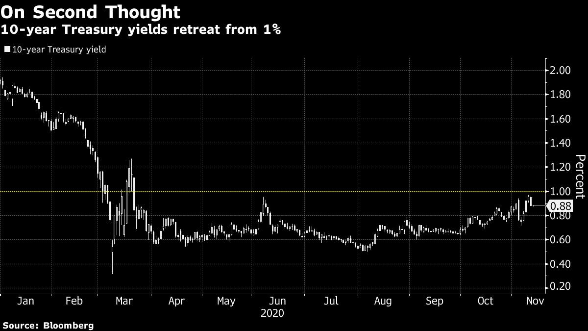首先是有关新冠疫苗研究取得潜在突破的消息,引发了债券市场的抛售浪潮。基准收益率迅速飙升至0.97%,周一短暂推高2年期和10年期收益率曲线至2017年以来的最陡峭水平。