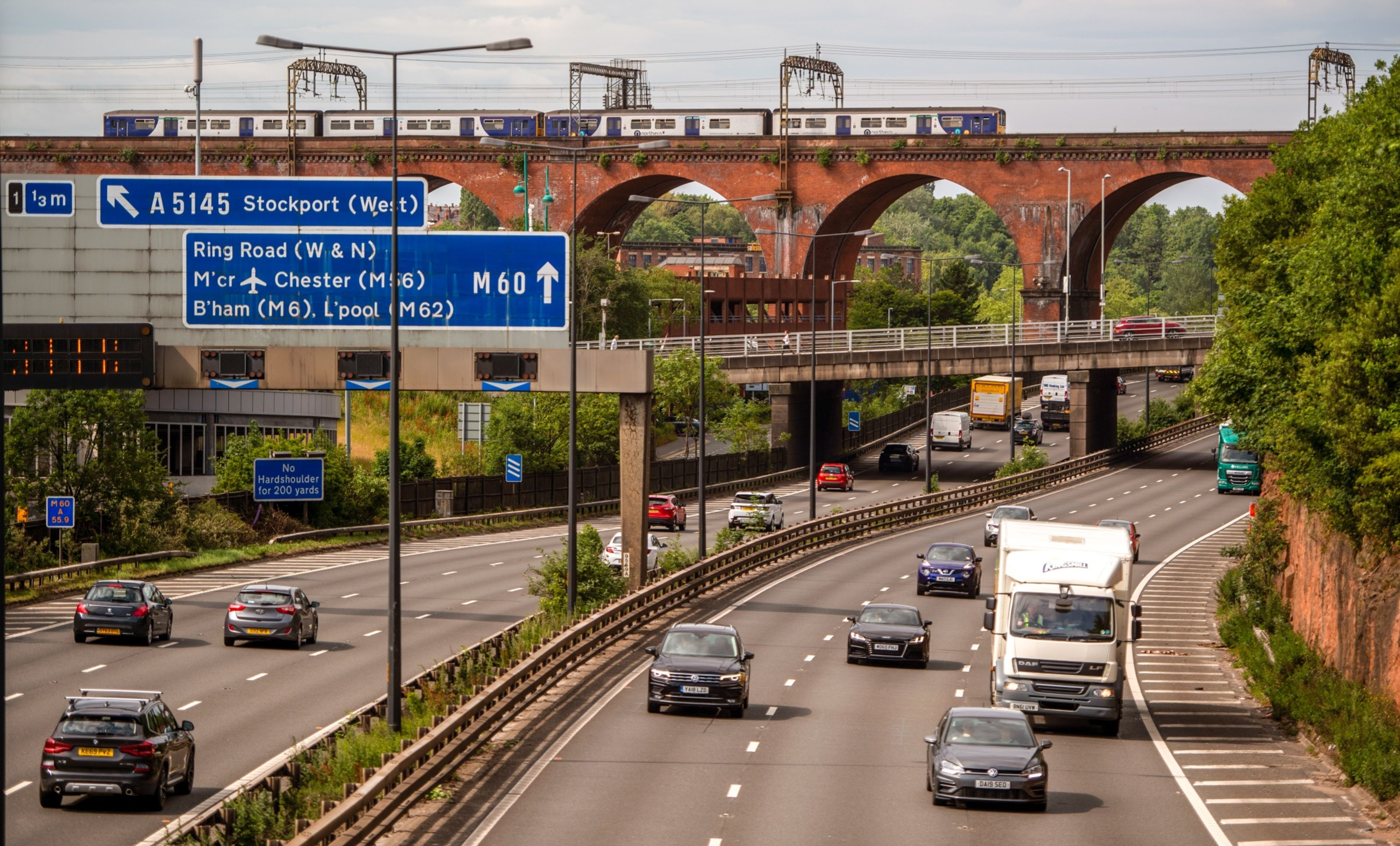 交通在英国的M60高速公路上行驶,一个试点项目将很快降低速度限制。