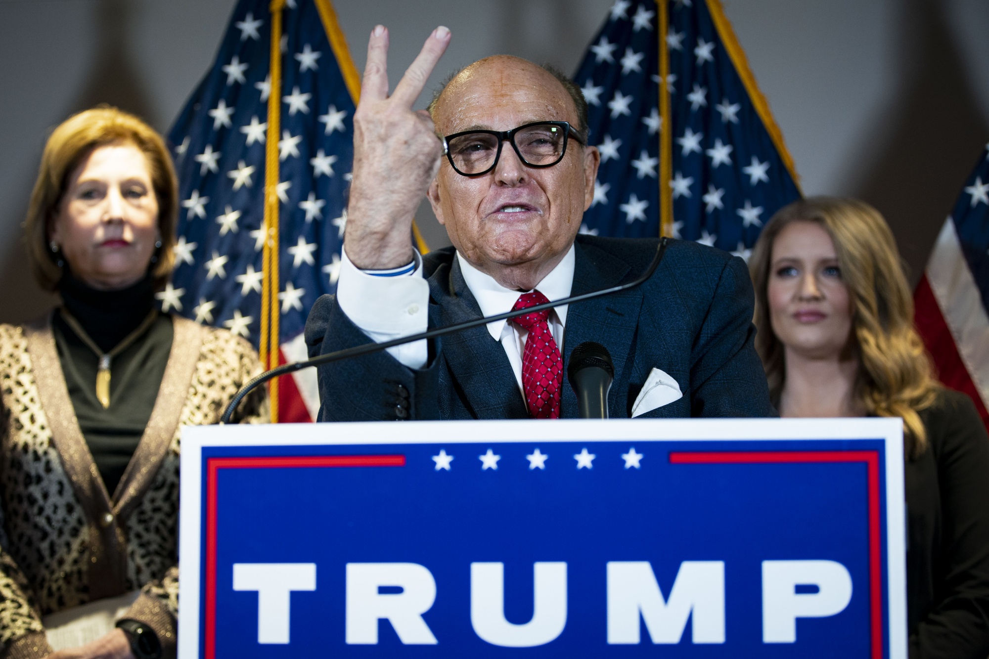 特朗普的律师鲁迪·朱利安尼昨天在华盛顿共和党全国委员会总部举行的新闻发布会上发言。摄影师:Al Drago/Bloomberg点击这里 了解更多关于黑人金融高管如何联合起来反对进步民主党要求拜登在其政府中排除任何与企业有关联的人的内容。此外,请 点击这里 查看本周最引人注目的政治图片,并告诉我们我们的表现如何或者我们遗漏了什么,发送邮件至 [email protected]*。*