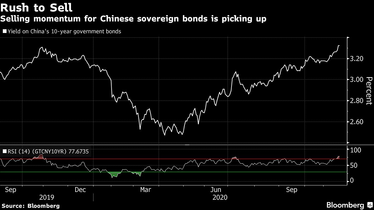 随着企业债券走弱,担心客户可能会赎回资金促使金融机构抛售他们最容易交易的资产。10年期基准国债收益率将升至3.32%以上的18个月高点。