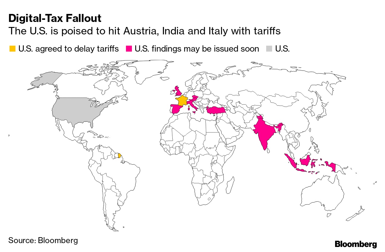 美国将很快发布对奥地利、意大利和印度对Facebook、Google和其他互联网公司征收本地收入税的决定进行调查的结果。据知情人士称,这可能为报复性关税铺平道路。这三个国家在今年实施所谓的数字服务税后,可能成为目标,对印度尼西亚、英国和土耳其的调查结果也可能出现。