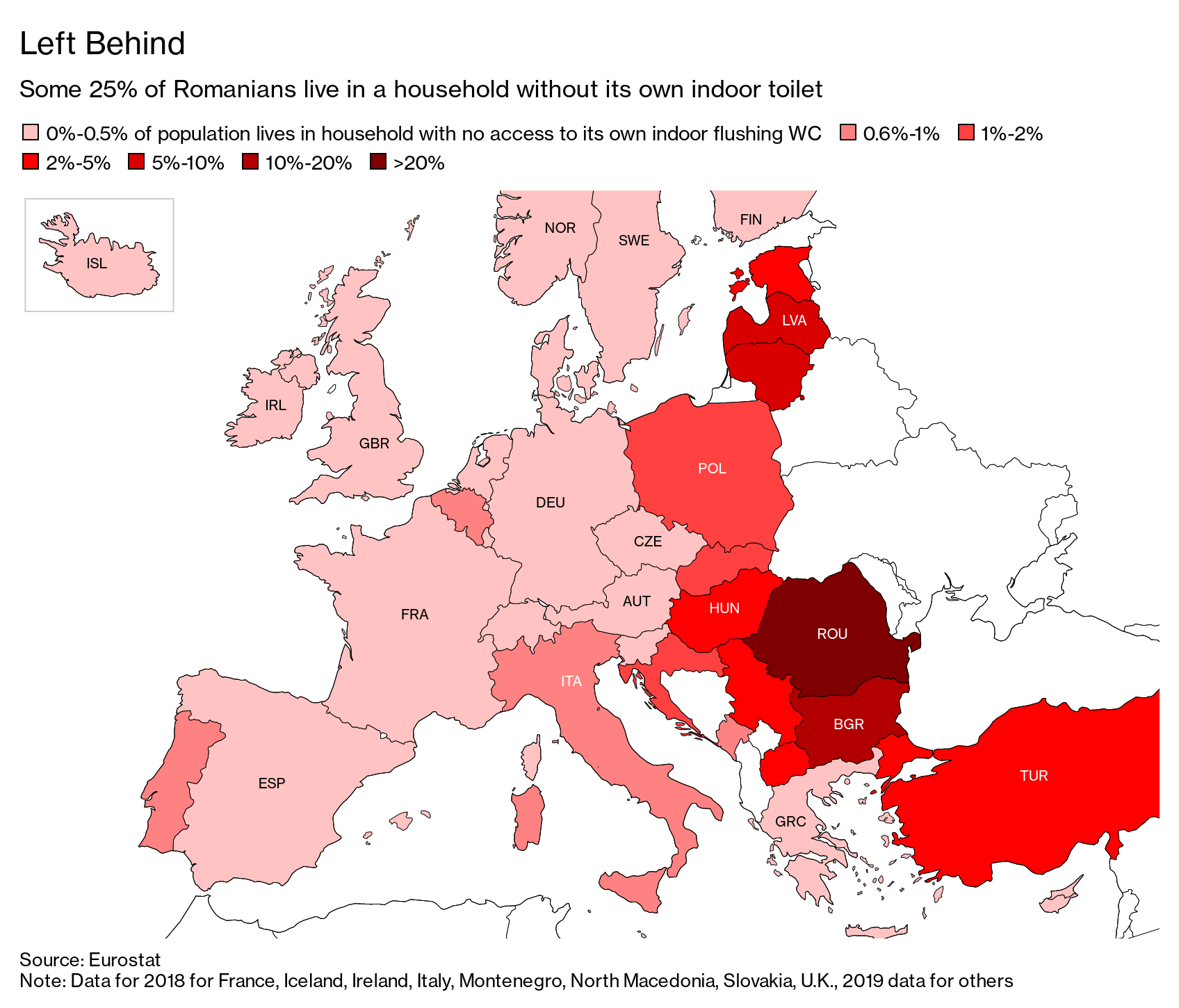 多年来在工资和养老金上的预算挥霍并没有显著改善所有罗马尼亚人的生活。缺乏明确的投资战略导致该国存在严重的不平等现象,成千上万人生活在贫困中,尤其是在东北部和西南部。该国加入欧盟十多年后,在获得体面厕所的准入方面仍排名垫底。