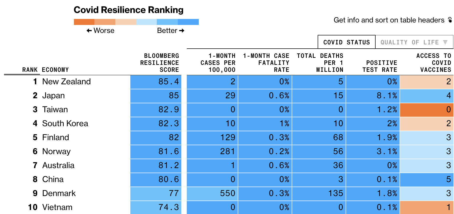 新冠肺炎造成的悲剧性生命损失颠覆了人们对哪些国家会表现最好的先入之见,像美国和英国这样的发达经济体受到大规模死亡和昂贵封锁的冲击。我们进行了数据分析,结果发现亚太地区是2020年五个最佳地点中的四个所在地。榜首?新西兰。