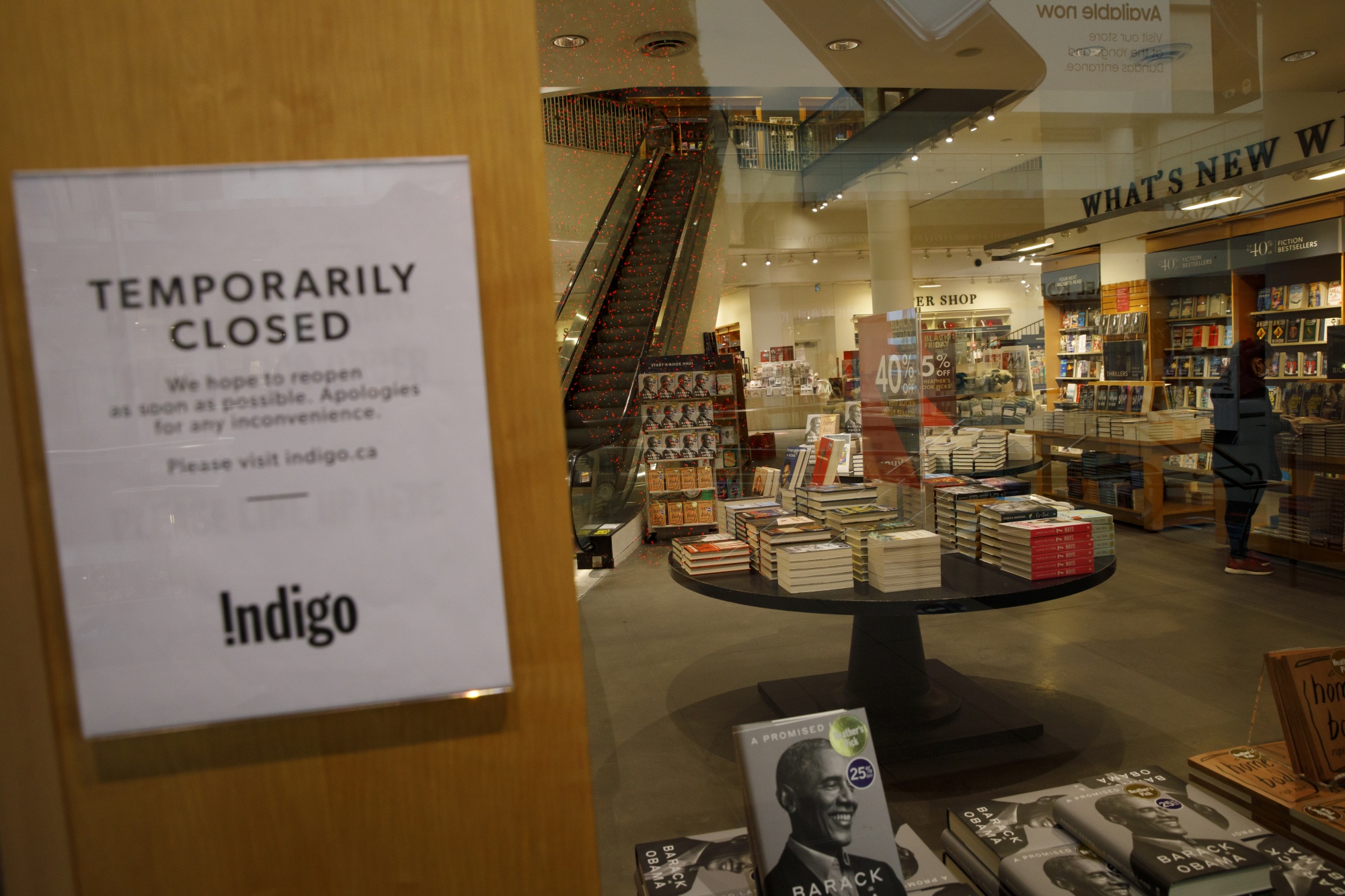 多伦多11月23日,多伦多的一家Indigo Books & Music Inc.书店上挂着关闭的标志。加拿大最大的省份下令在多伦多和其一个郊区实施封锁。