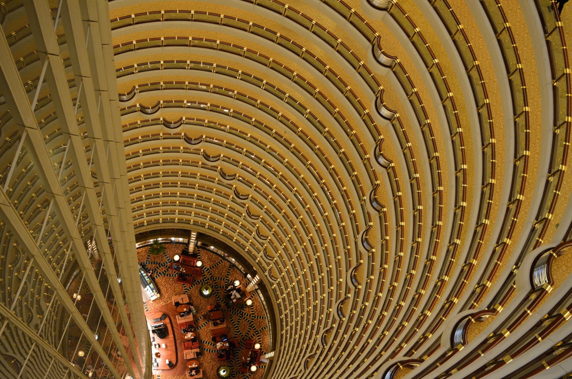 波特曼在他的酒店中并没有采取半吊子的措施。考虑到它们的宏伟高度:他的第一家酒店,亚特兰大凯悦酒店:22层;纽约万豪酒店:37层;亚特兰大万豪酒店:50层。只有迪拜的阿拉伯塔酒店,于1999年开业,最终超越了波特曼最高的中庭。