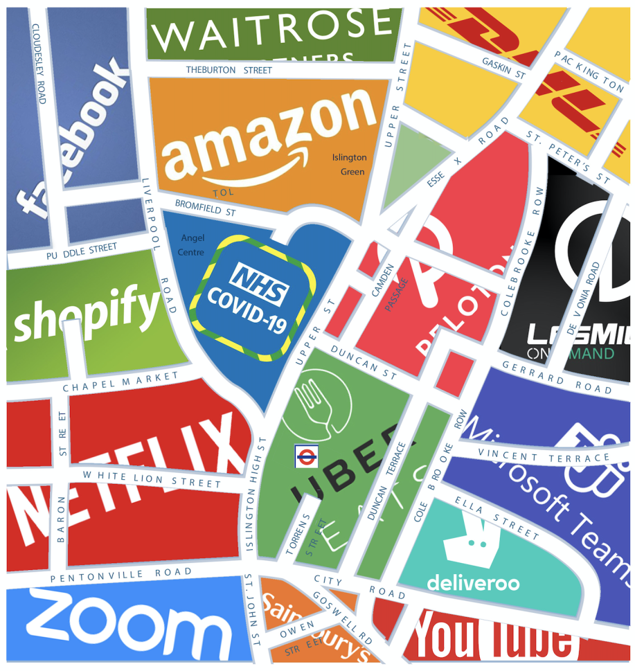 一位读者建议,在大流行期间,伦敦的城市生活已被互联网和快递公司取代。Alfonso Pezzi/Bloomberg我们延长了读者提交自制地图的截止日期,展示他们的世界在冠状病毒大流行期间发生了怎样的变化 — 或者它如何改变了他们对未来的看法。这是CityLab春季大流行地图项目的续集。本月晚些时候,CityLab将展示部分读者地图。其中一些也可能出现在我们即将推出的一本关于地图的书中,即将由Black Dog & Leventhal Publishers出版。上面是我们最近从伦敦的Alfonso Pezzi收到的一份地图,它表明了互联网和快递公司在今年取代了身体接触和公共空间。