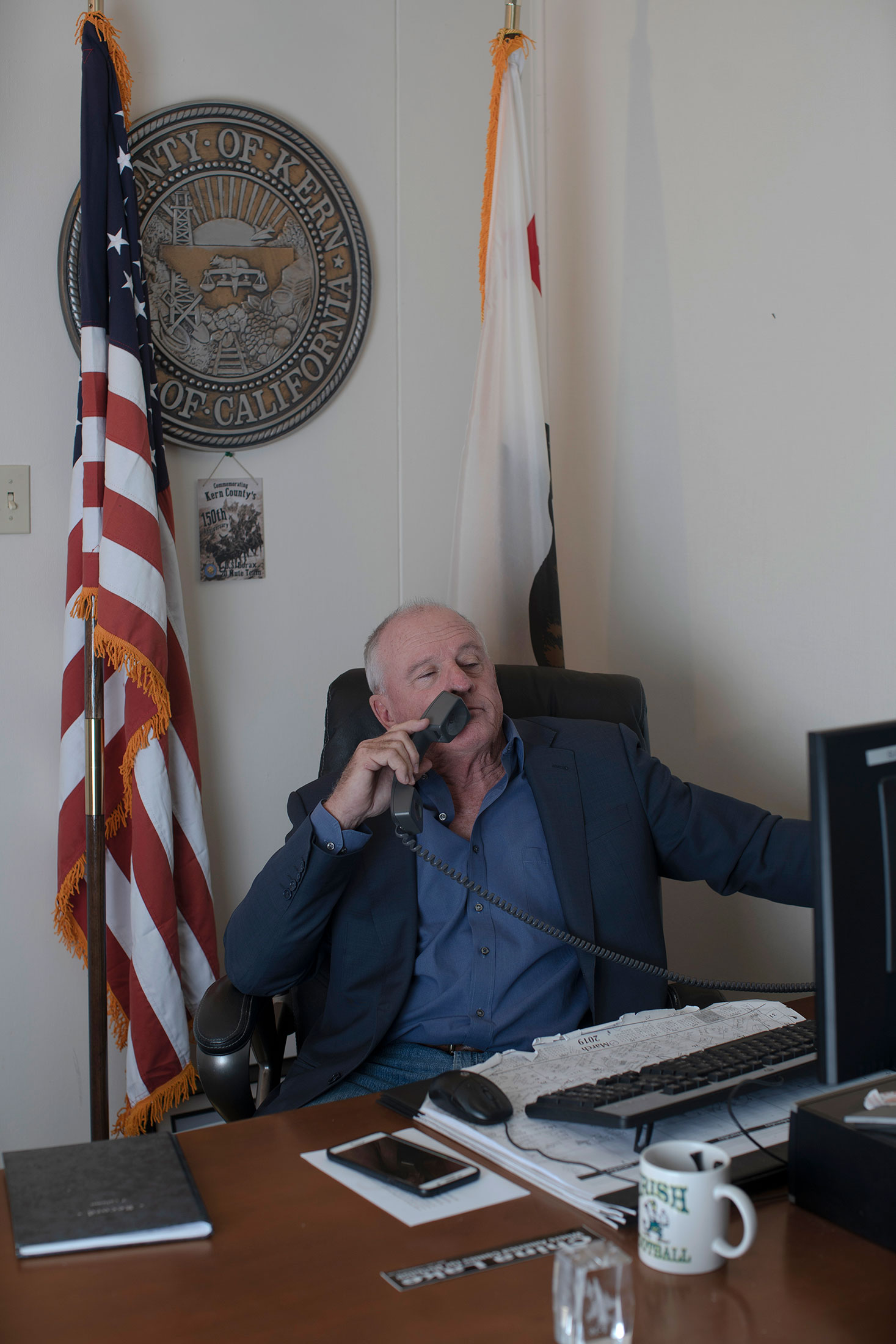 在加利福尼亚州克恩县,迄今为止最引人注目的SGMA诉讼发生地,负责核算水量的工作落在由五名公选监事组成的委员会身上。Mick Gleason是第1选区的监事,该选区包括里奇克雷斯特和印第安韦尔斯谷的大部分地区。他还是该谷地下水管理机构的主席。
