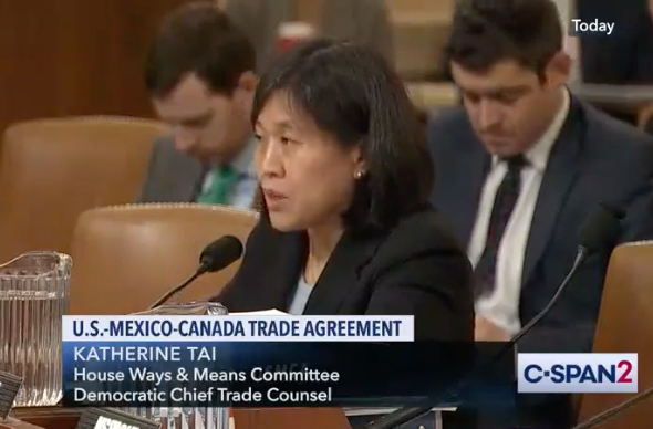 凯瑟琳·泰(Katherine Tai)在2019年出现在众议院财政委员会面前。