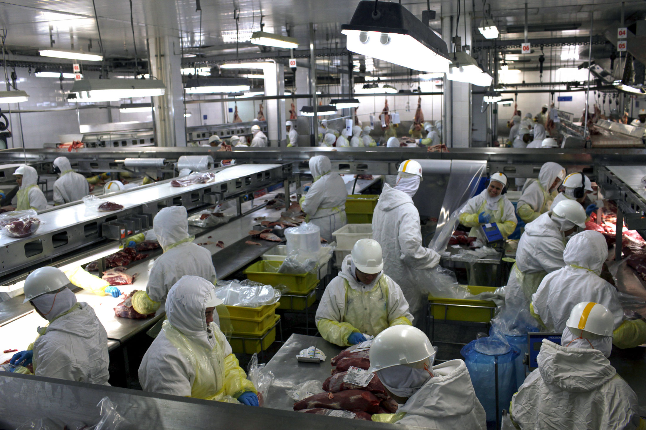 在巴西Barretos的肉类加工厂工作人员。摄影师:Dado Galdieri/Bloomberg### 4. 屠宰场