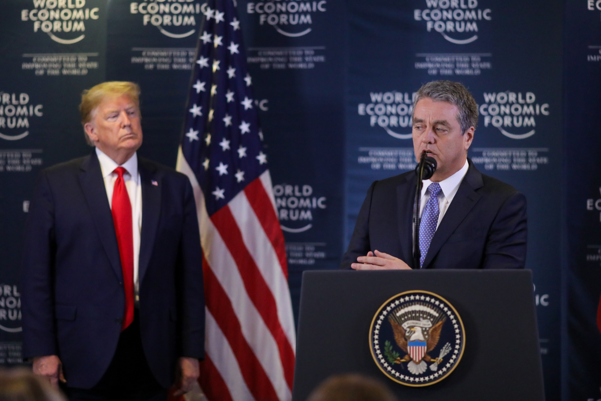 唐纳德·特朗普总统和世贸组织总干事罗伯托·阿泽维多在一月份。