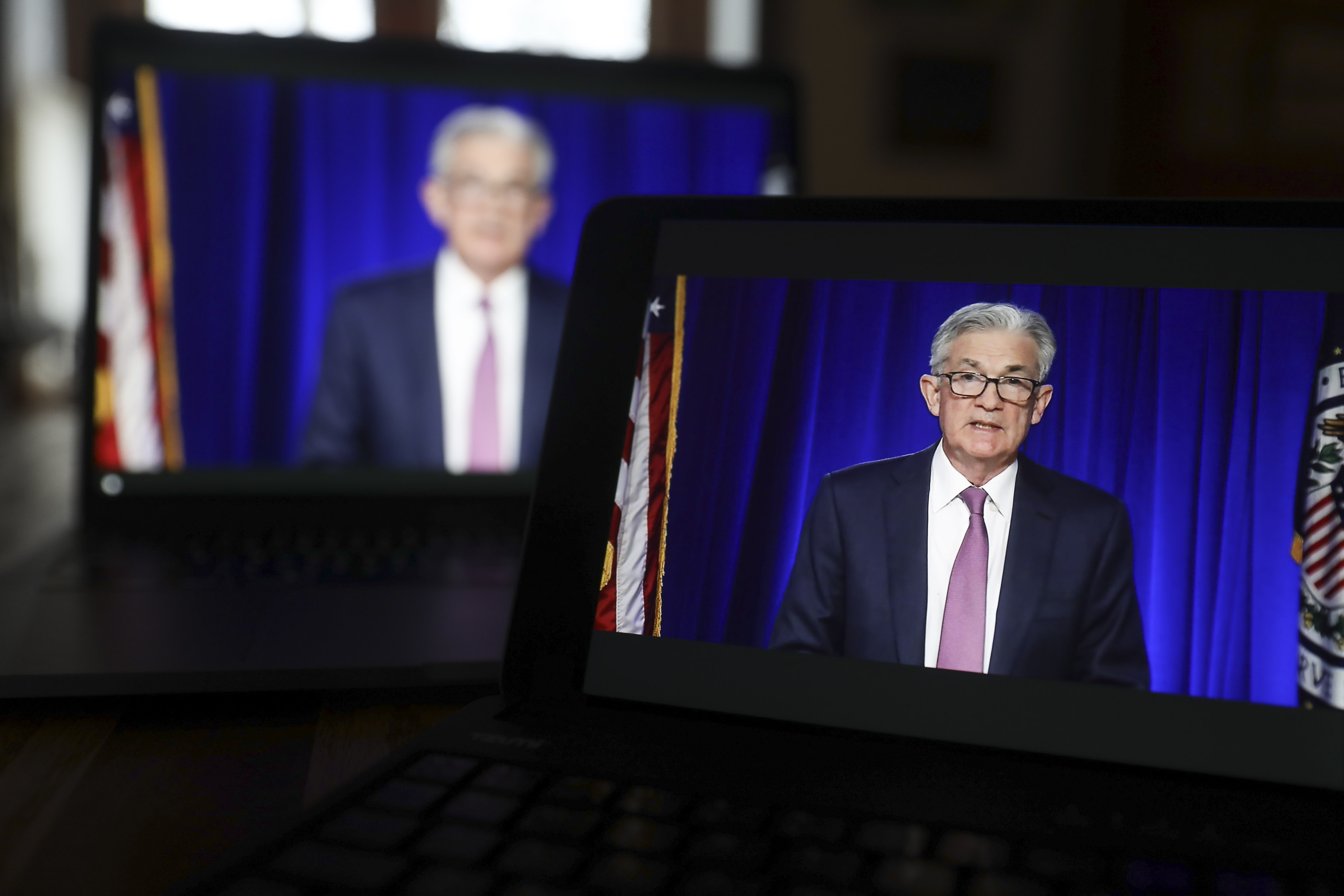 杰罗姆·鲍威尔,美国联邦储备委员会主席,在2020年12月16日星期三在美国伊利诺伊州蒂斯基尔瓦举行的虚拟新闻发布会上发言。
