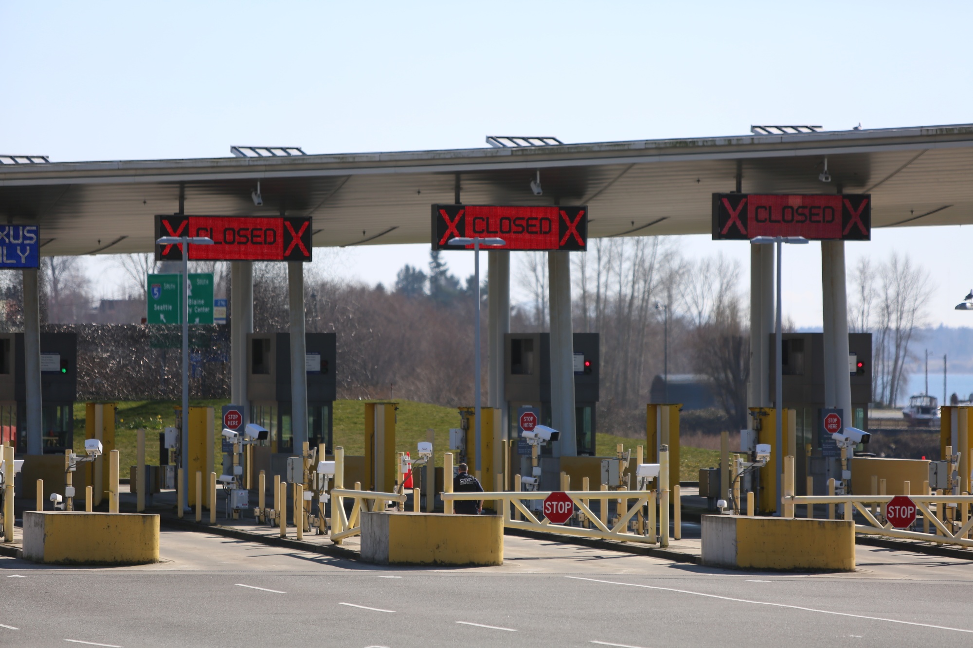 美国与加拿大边境的一侧,靠近西雅图,在三月份关闭了非必要旅行。