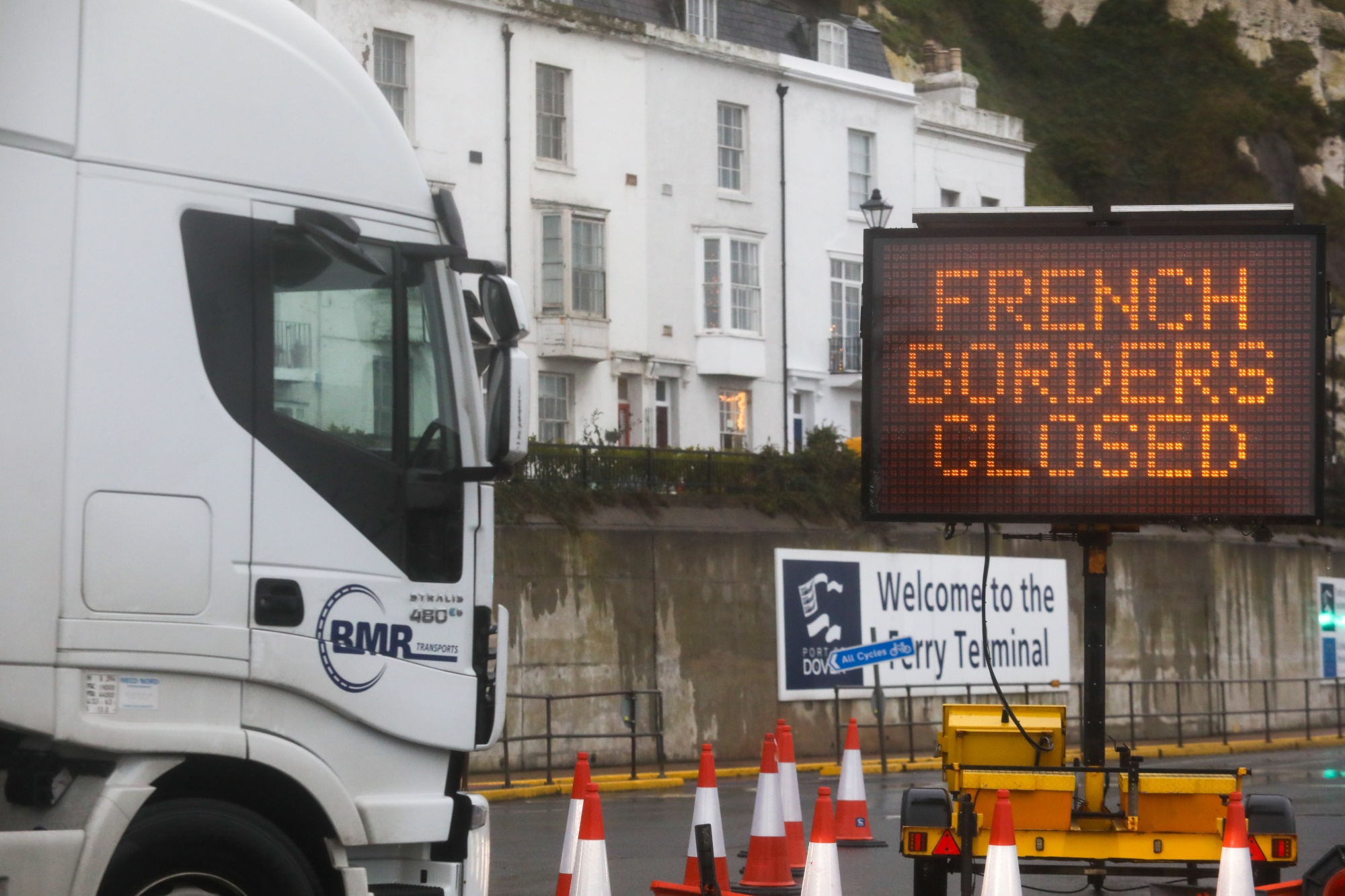 摄影师:克里斯·拉特克利夫/彭博社在发现了一种新的冠状病毒变种后,法国暂停了从英国进入的所有旅行,包括货运,这让英国的食品供应在圣诞节前几天面临重大干扰。