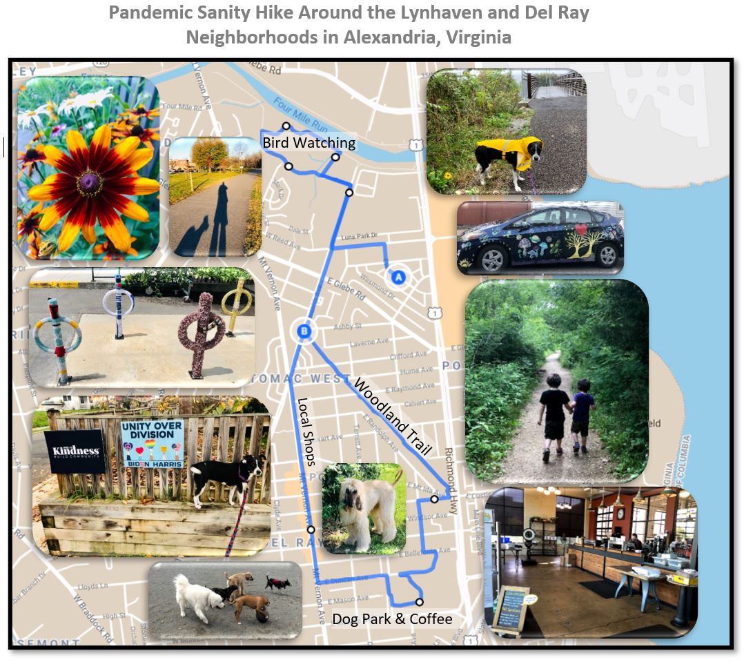 自疫情开始以来,我每天至少有一部分时间在我附近的“理智徒步旅行”。这是神奇的。它穿越了亚历山德里亚的历史街区Lynhaven和Del Ray以及前Potomac镇。我每天锻炼以帮助应对生活中的压力和干扰。我仍然太重了,但迄今为止,我真正喜欢的日常锻炼一直是我的珠穆朗玛峰。这对我帮助很大。正如照片所示,我更加关注世界,放慢脚步,更多地专注于生活中的质量而不是数量。当音乐停止,我们都被困在原地时,我感到非常幸运。