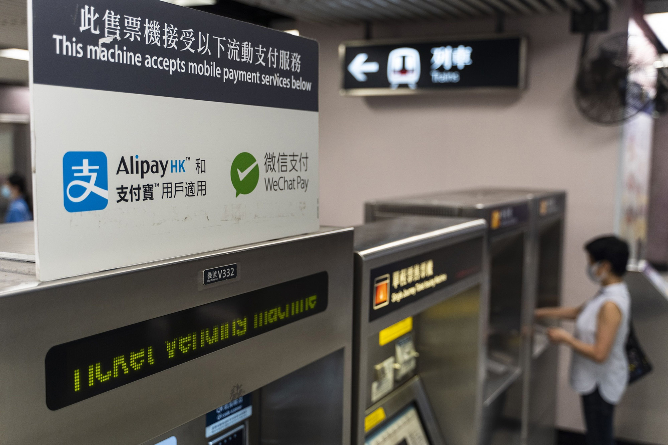 香港一台地铁售票机接受蚂蚁集团的支付宝数字支付服务。摄影师:陈朗熙/彭博社在余额宝在国内掀起波澜的同时,阿里巴巴在纽约成为新闻焦点,2014年,它完成了当时全球最大的IPO。首日股价飙升38%。在IPO后不久播出的CBS新闻采访中,马云表示,他与当局打交道的方法是“永远不要与政府做生意。喜欢他们,但不要娶他们。”