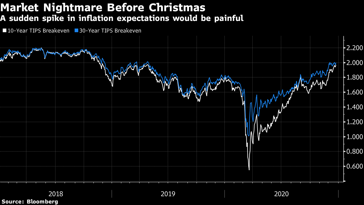 美股微涨,英镑上涨,达成脱欧贸易协议的轮廓。日本、香港和澳大利亚的股指期货走高。围绕唐纳德·特朗普要求修改疫情救助立法的不确定性影响了美国市场情绪,标普500指数仅上涨了0.1%。纳斯达克综合指数和罗素2000指数创下盘中历史新高。周三,5年期和30年期国债收益率之间的差距扩大至四年来的最高水平。