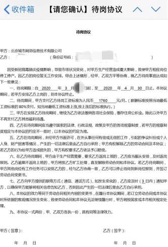 从上图的待岗协议中看出,受新冠肺炎影响致使甲方相应岗位停工停产,58同城方面协议乙方进行待岗。