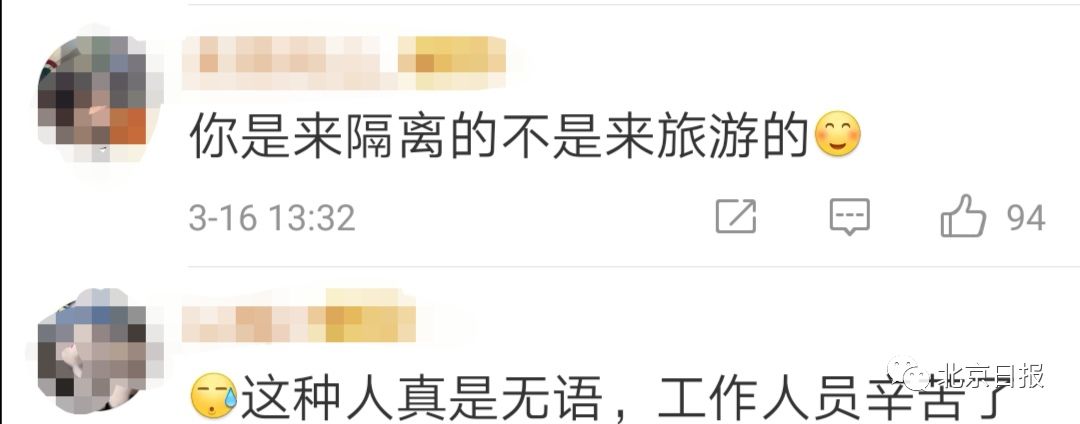 最近有几个境外回国人员在隔离点闹意见的事让人很生气:有的人有咳嗽症状却不配合入境检疫步骤,有的人在隔离点非矿泉水不喝闹脾气。