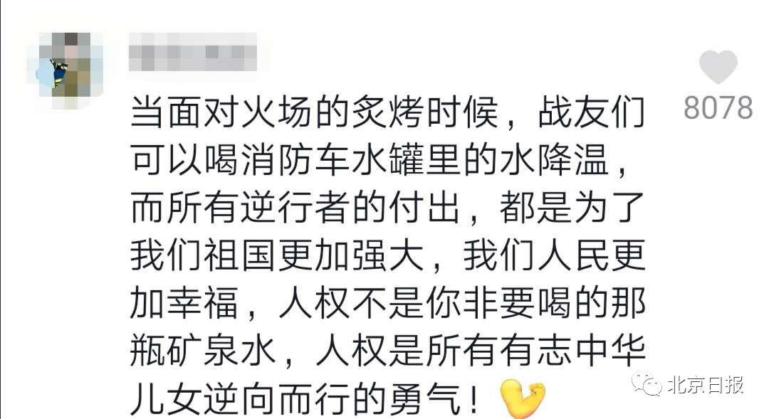 还有网友对女子喊话:人权不是你非要喝的那瓶矿泉水,而是所有有志中华儿女逆向而行的勇气。