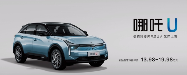 日前,合众新能源汽车带来旗下哪吒汽车新款量产车型U,该车补贴后售价区间为13.98—19.98万元,分为400km续航和500km续航两个版本。