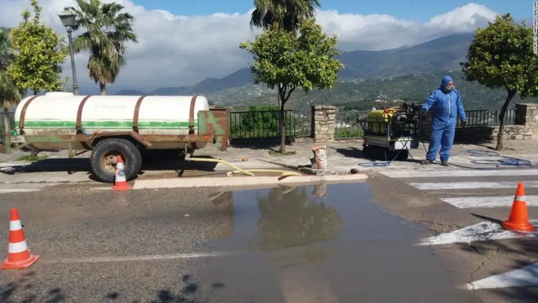 其中一位志愿者是当地农民安东尼奥·阿蒂恩扎(Antonio Atienza),他的拖拉机负责在镇上的街道上喷洒农药。