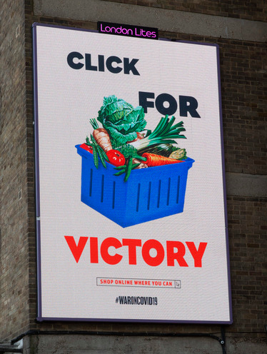 4月3日,英国伦敦街头的宣传海报鼓励人们网上购物。新华社记者韩岩摄