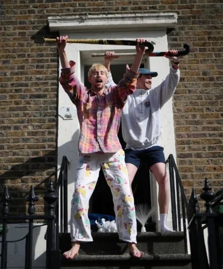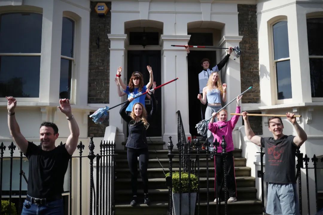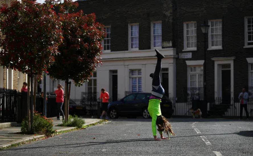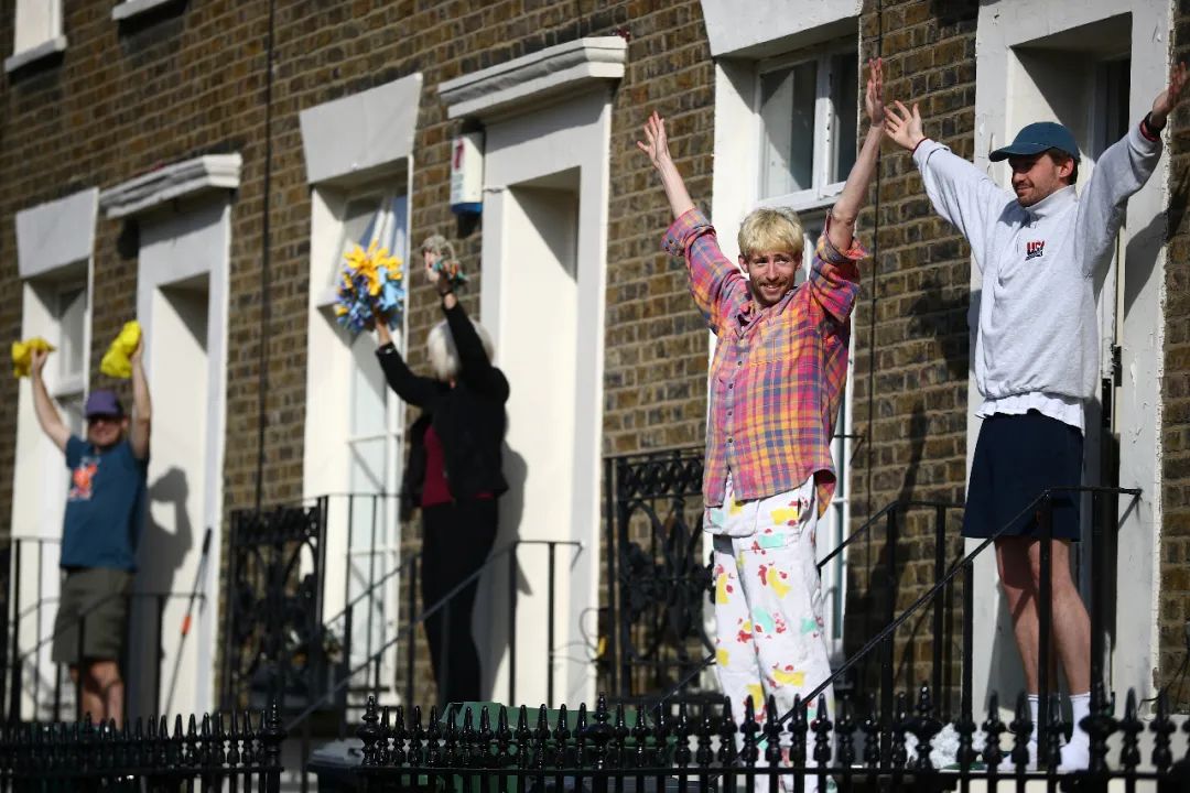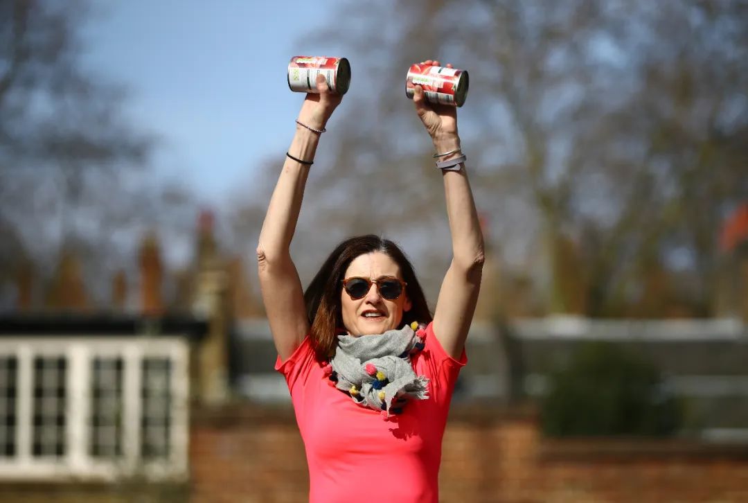 4月4日,在英国伦敦,居民在家门口参与“健身课”。由于新冠肺炎疫情影响,当地民众被要求待在家中,禁止非必要外出。不少居民自发在家门口参与“健身课”,和邻居们一起强身健体。新华社/路透