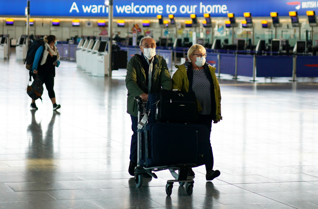 4月5日在英国伦敦希思罗机场拍摄的戴口罩的旅客。新华社/路透