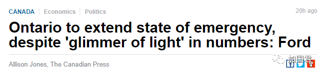 尽管看到抗疫出现希望,但是,安省省长道格·福特不敢松懈,将安省紧急状态令延长28天至5月12日,拒绝过快放松对非紧急商业的关门限制。福特理解地说道:“长期呆在家里,人们会变得焦躁不安,变得越来越呆滞,我知道这很困难。”福特接着说出为什么看到一线希望的还延长紧急状态令的原因。