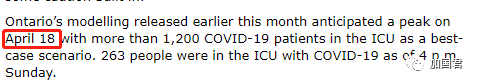 安省本月初发布的模型预计,疫情将在4月18日(本周六)达到顶峰。