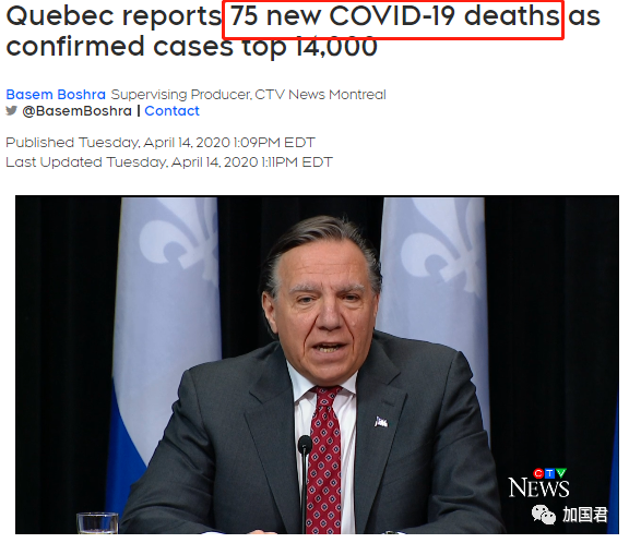 下午1点,魁省的新增死亡更加吓人,日增75例。