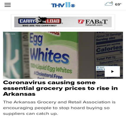 △THV11报道截图:新冠疫情导致阿肯色州零售商品物价升高