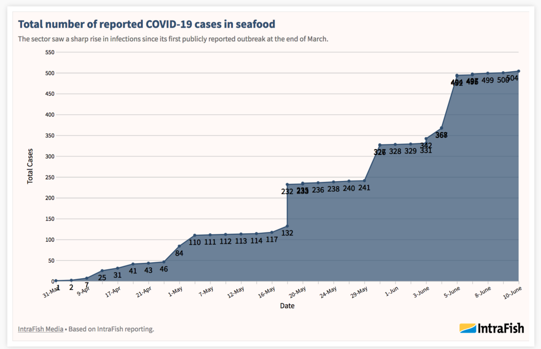 可是,疫情确实又跟海鲜市场有关。根据海鲜产品新闻网站Intrafish的资料,目前世界各地海产品从业人员有504人确诊感染新冠。