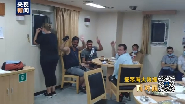 获救人员纷纷询问船员是哪里人,当得知船员们来自中国时,他们竖起大拇指。随后,41名落水人员被成功转移到OCEAN ANG号散货船上。船舱内,船员们将自己的餐食让给了获救人员,船长张辉立即安排船员为获救人员检测体温,按照防疫要求发放口罩,为受伤人员进行基本的伤口处理。晚上10点多,41名获救人员被转移到希腊海岸警卫队的船只上,持续五个多小时的救援圆满结束。