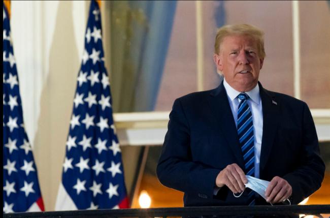 川普10月2日在推特(Twitter)上宣布自己确诊新冠肺炎的消息,并于当晚住进了沃尔特·里德(Walter Reed)军事医院。经过几天的治疗后,虽然还没有痊愈,川普就于10月5日晚出院,返回了白宫,并继续接受治疗。他当晚在白宫的媒体活动上,还被拍到呼吸困难一幕。