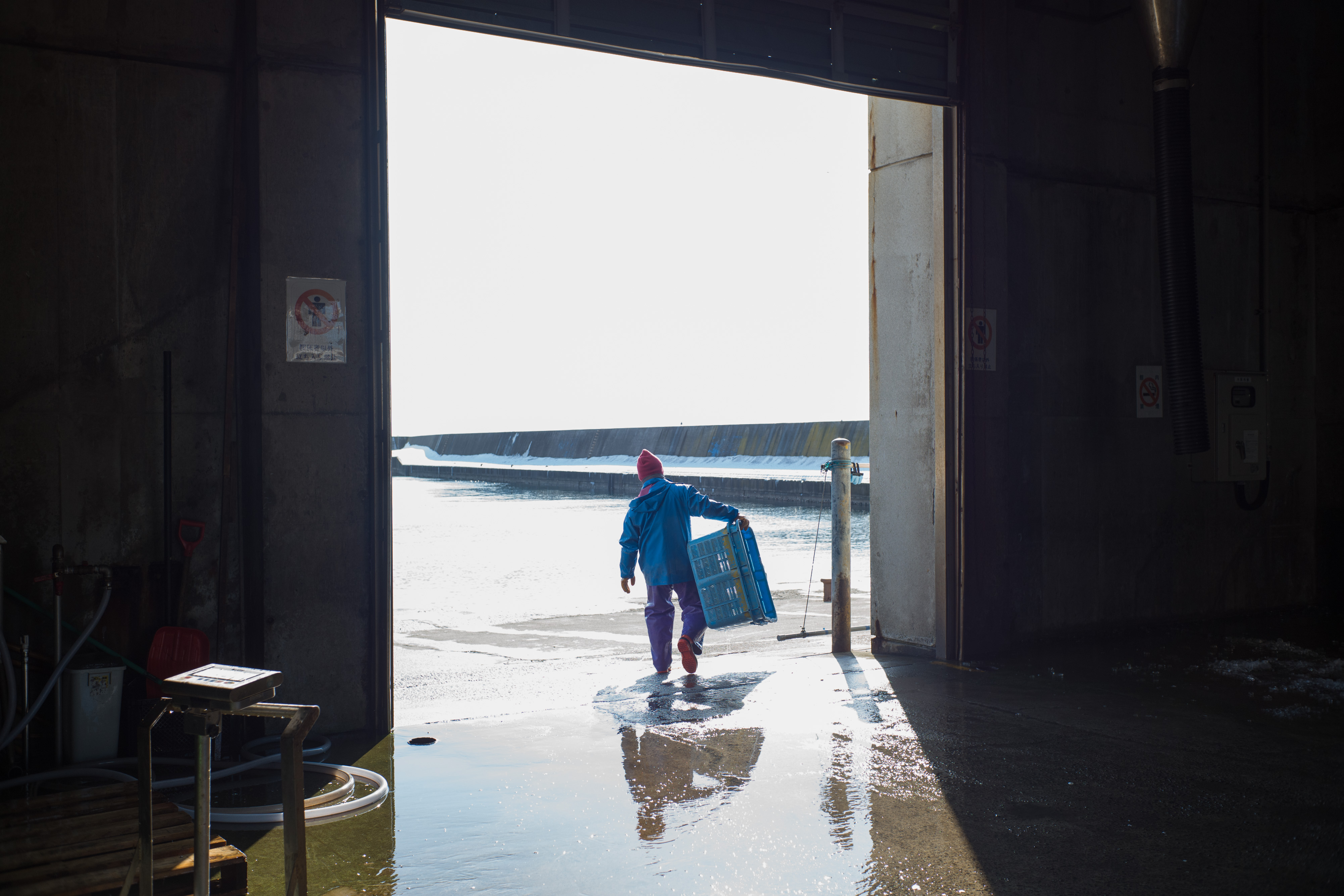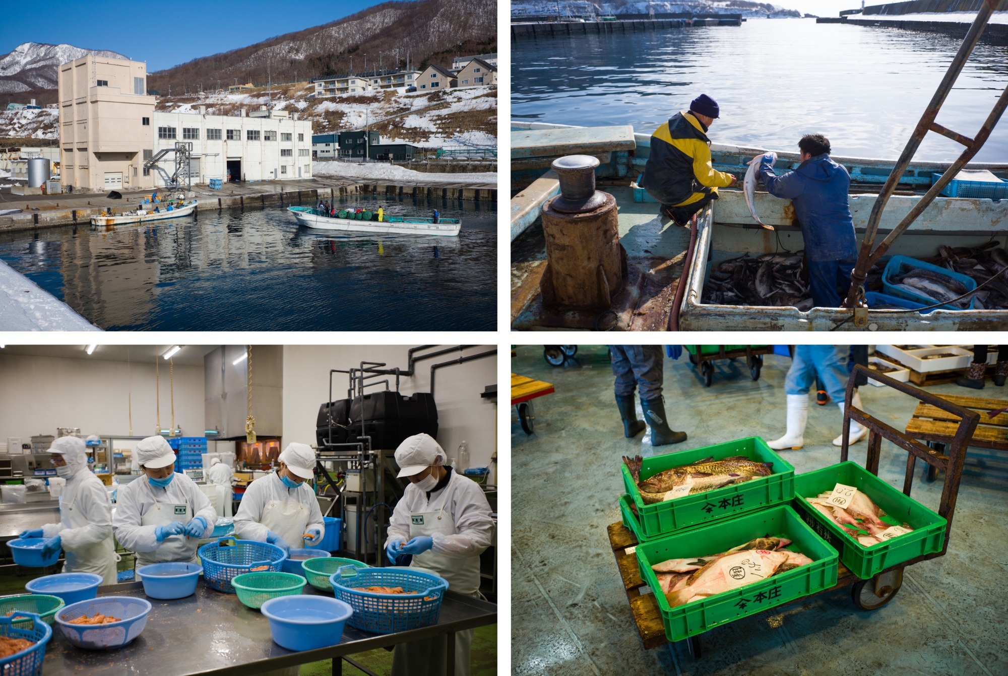 上排:神威渔港的渔民;下排从左至右:寿都加工厂工人在分类鳕鱼子,以及渔市场的日常捕获。摄影师:Kentaro Takahashi/Bloomberg这两个社区都在经历衰退。自1985年以来,日本非农业海鲜产量已经下降了超过三分之二。神威村政府试图通过一个项目恢复捕获量来促进其传统产业。但由气候变化加剧的温暖海水已经造成了损失。