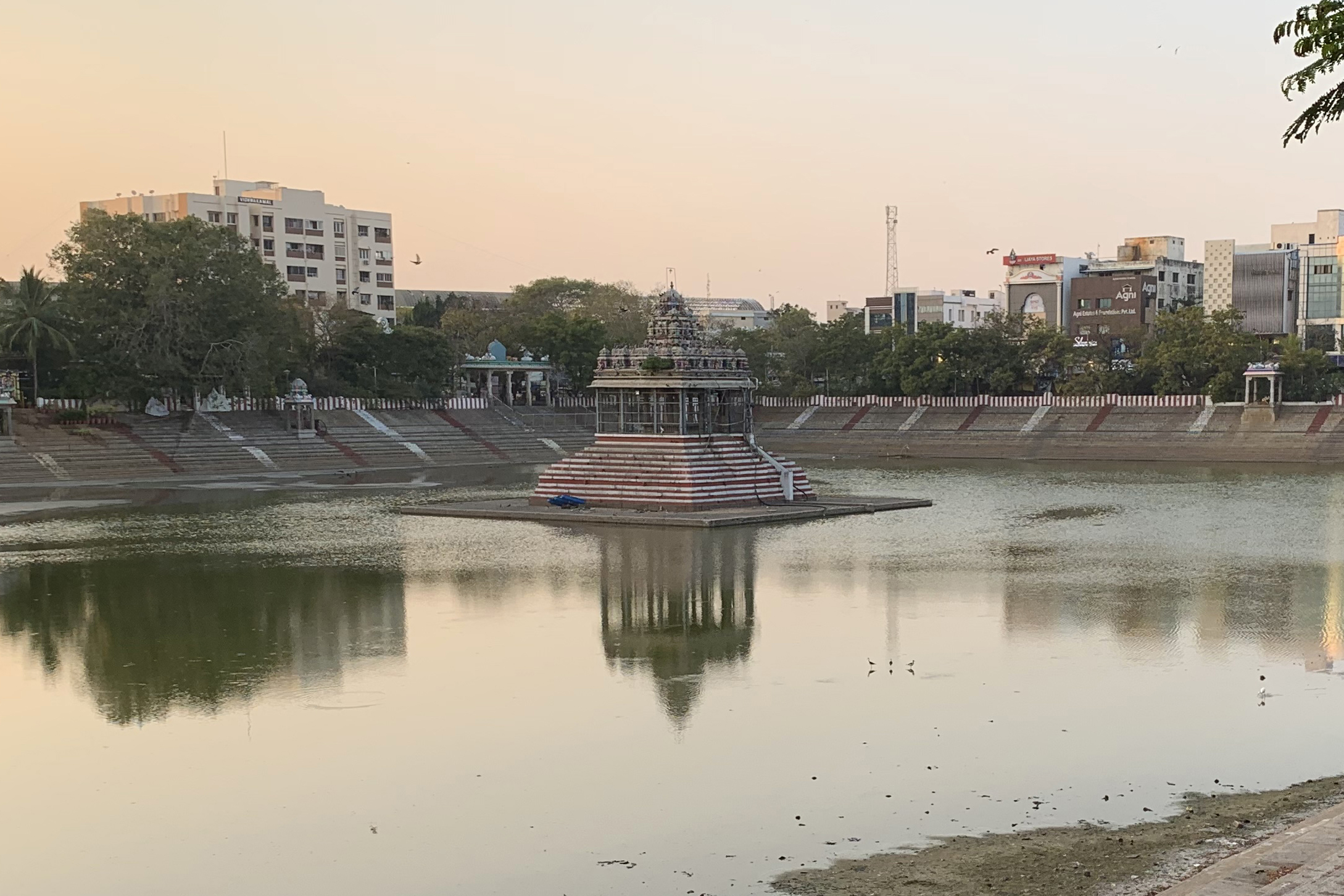 卡帕利什瓦勒寺庙的水池,是“千个水池之城”计划的一部分,在金奈的迈拉普尔。来源:Ooze / 以水为杠杆的千个水池之城现在,政府正在追求一种受到该城市过去启发的新方法。金奈大都市公司支持一个名为“千个水池之城”的倡议,这是对围绕寺庙修建的古代人工湖的一种致敬。
