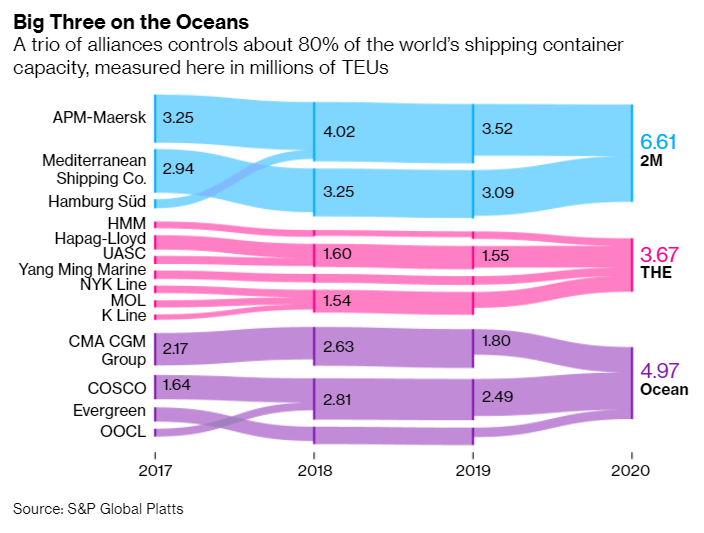 不断上涨的货运费率和交货延迟引发了全球反弹,公司对服务恶化和海运成本上升的破坏性组合感到沮丧。除了疫情干扰之外,一些承运人指责集装箱船公司变得更加集中化并更快地调整产能。