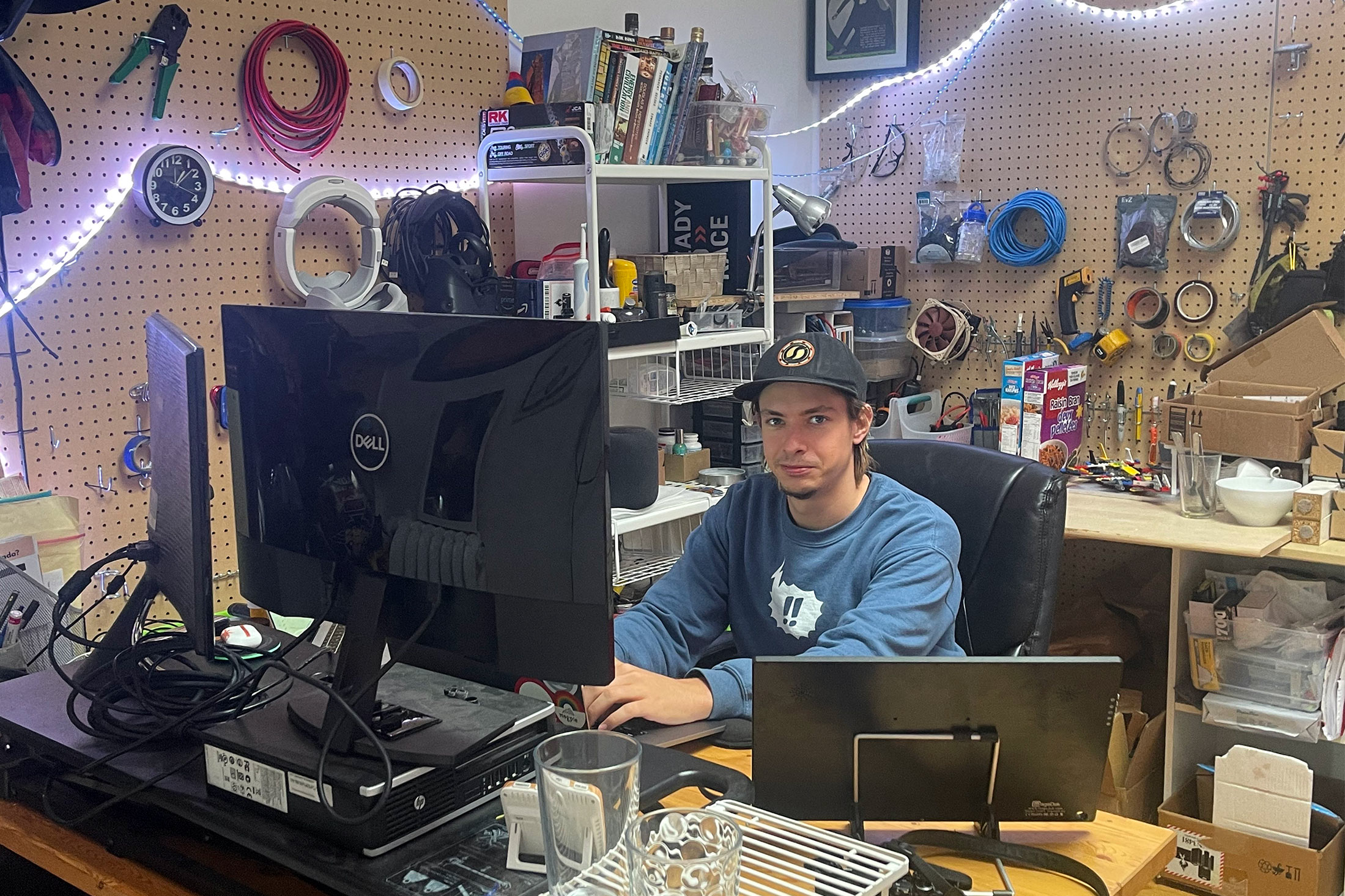 尼克·斯威廷,24岁,在蒙特利尔卧室里交易股票的桌子旁。来源:尼克·斯威廷告诉我们我们做得如何或者我们错过了什么,请发送电子邮件至[email protected]。